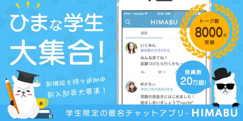 2019年1月最新! 学生に大人気の学生限定コミュニティアプリ「ひま部」の初歩的な機能から使いこなし方、ファンや推しメンを手っ取り早く集める方法や、無料通話を使った知らない相手とも会話を楽しめる方法、禁止事項・アカウント凍結情報、ひま部を運営し…